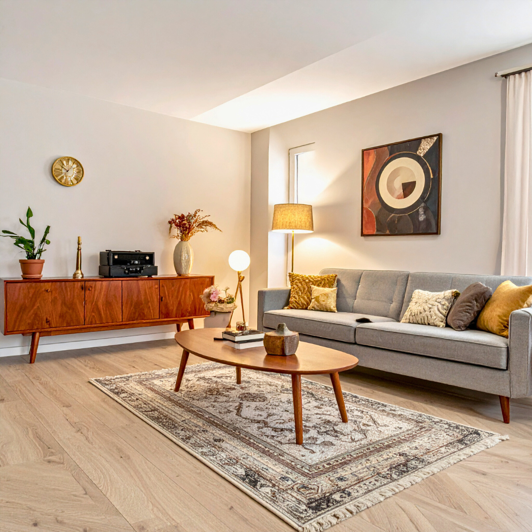 Picture a contemporary, minimalist living area softened by a vintage Persian rug or anchored by a striking mid-century sideboard. Envision modern lighting paired with a retro-inspired sofa in vibrant hues. These thoughtful contrasts create a visual tension that is both exciting and elegant, inviting occupants to experience a layered, multidimensional design narrative.