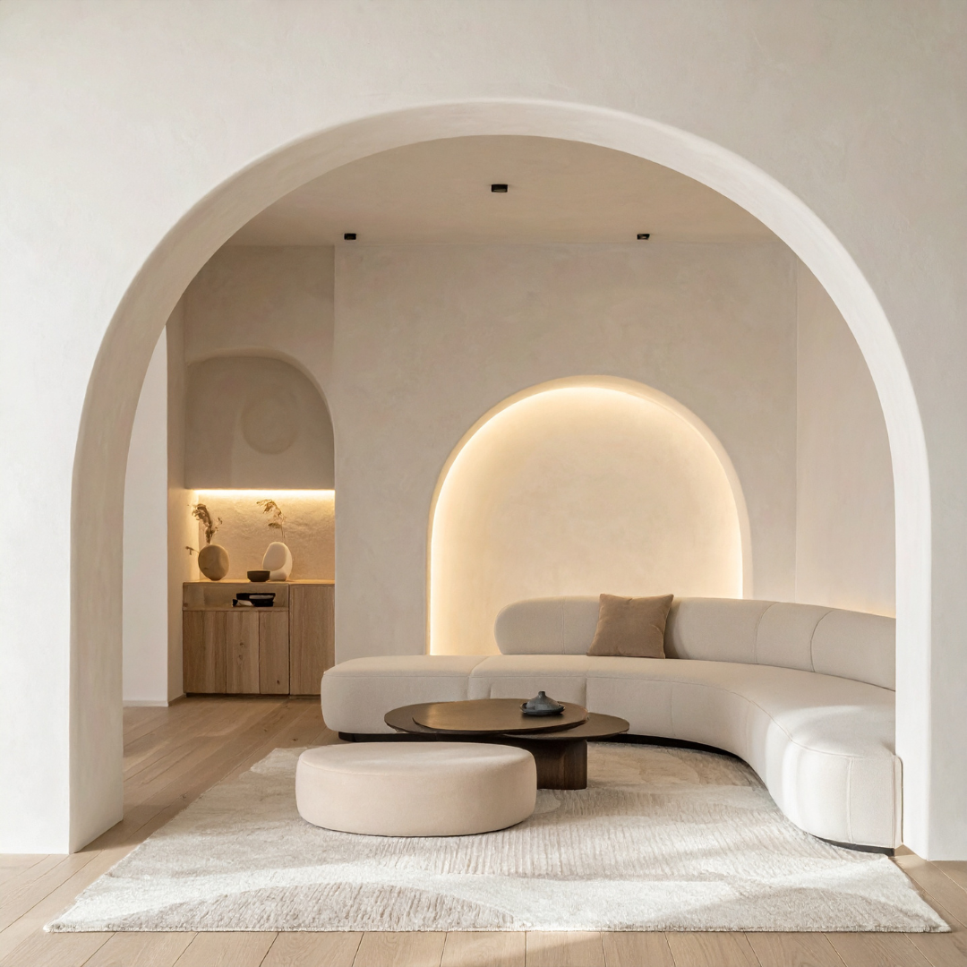 “Arches are one of the biggest comebacks of 2025.” But this is not merely a nostalgic revival—it is a refined reinvention. Curves are redefining how spaces feel, moving them from stark precision to something far more human.