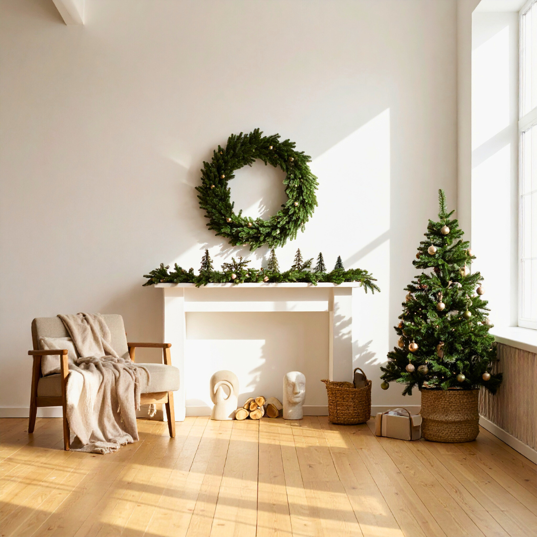 Minimalism helps us uncover those stories. Instead of filling a room with ornaments, we choose to elevate what is already meaningful. Sometimes the soft glow of late-afternoon sunlight or the warmth of a wooden floor becomes the season’s most honest ornament. Other times, a single statement piece—an elegant wreath, a handcrafted sculpture, or a thoughtfully chosen textile—sets the tone for the entire space.