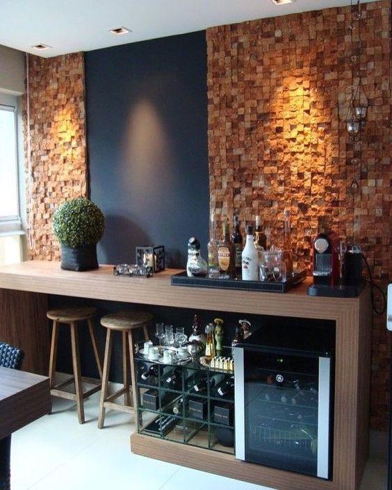 This home bar also doubles as wall décor. With smaller homes, home bar ideas, and designs have become more creative. Save up on floor space by installing your home bar on the wall. Great idea for bachelor pads and smaller mancaves. Box shelves serve as storage, counters, and lighting base. Use your creativity to design the best wall home bar fit for your taste and personality.