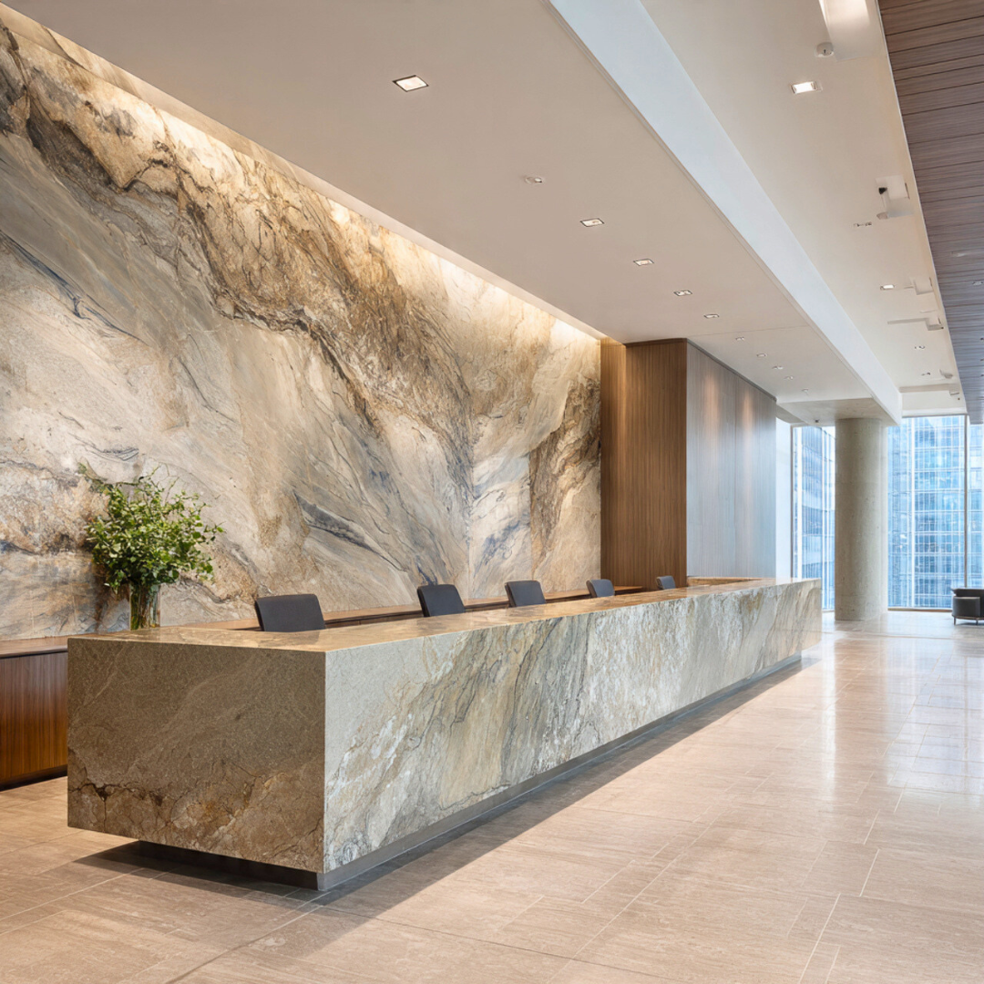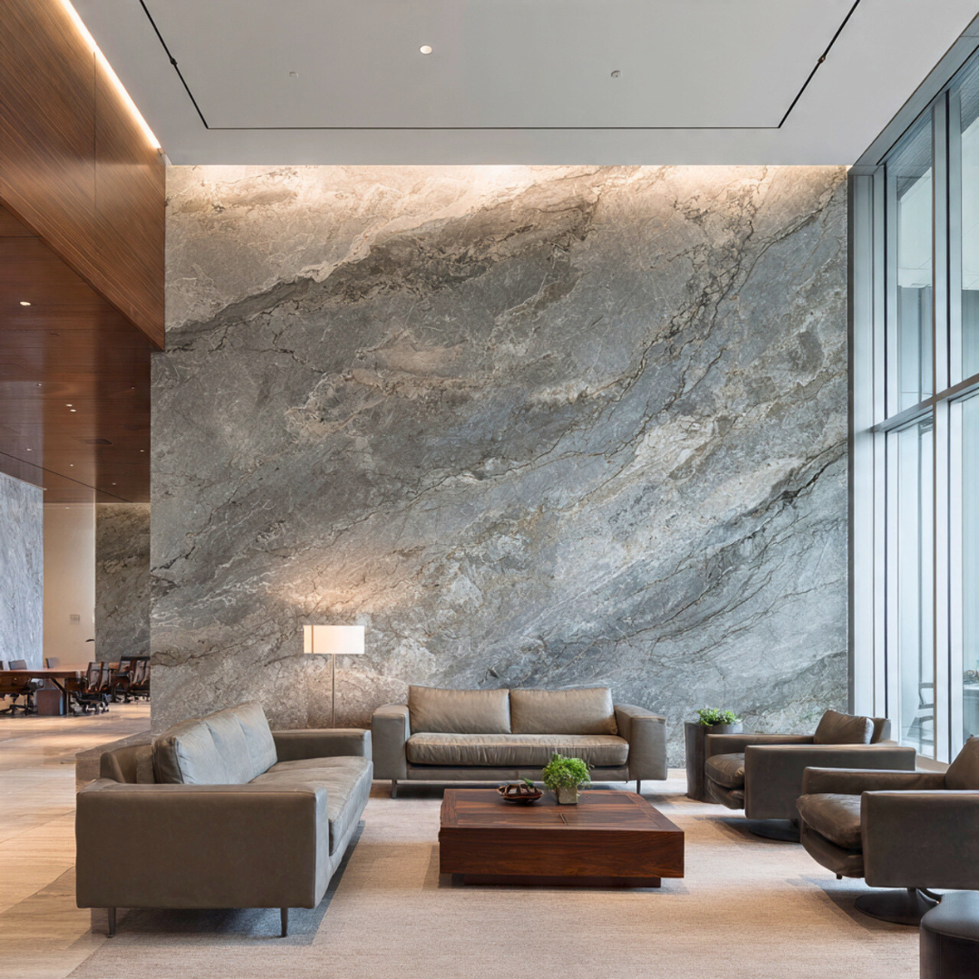 Corporate environments are often saturated with glare, reflective finishes, and digital stimulation. Stone offers a quieter alternative — one that feels composed rather than performative. Its depth is perceived gradually, not instantly.