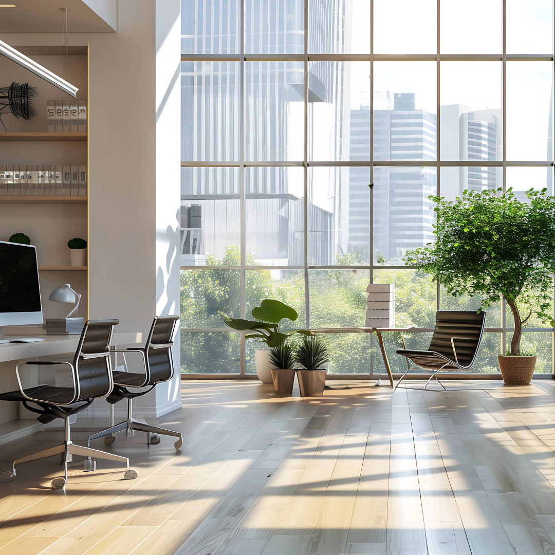 Tip: Biophilic design, which includes greenery, natural textures, and organic shapes, can make the space feel more inviting and nurturing, promoting a healthier work environment.
