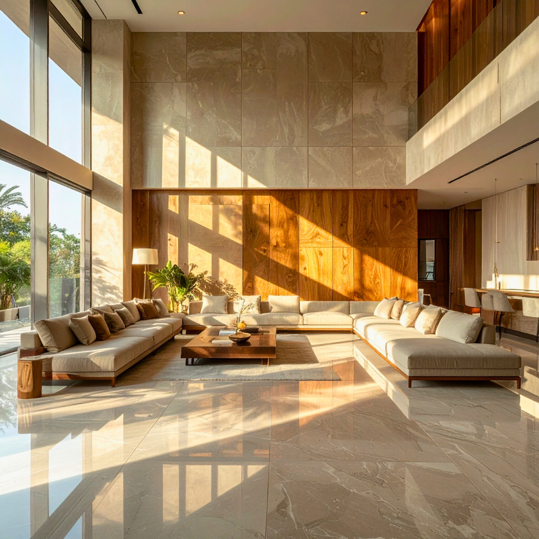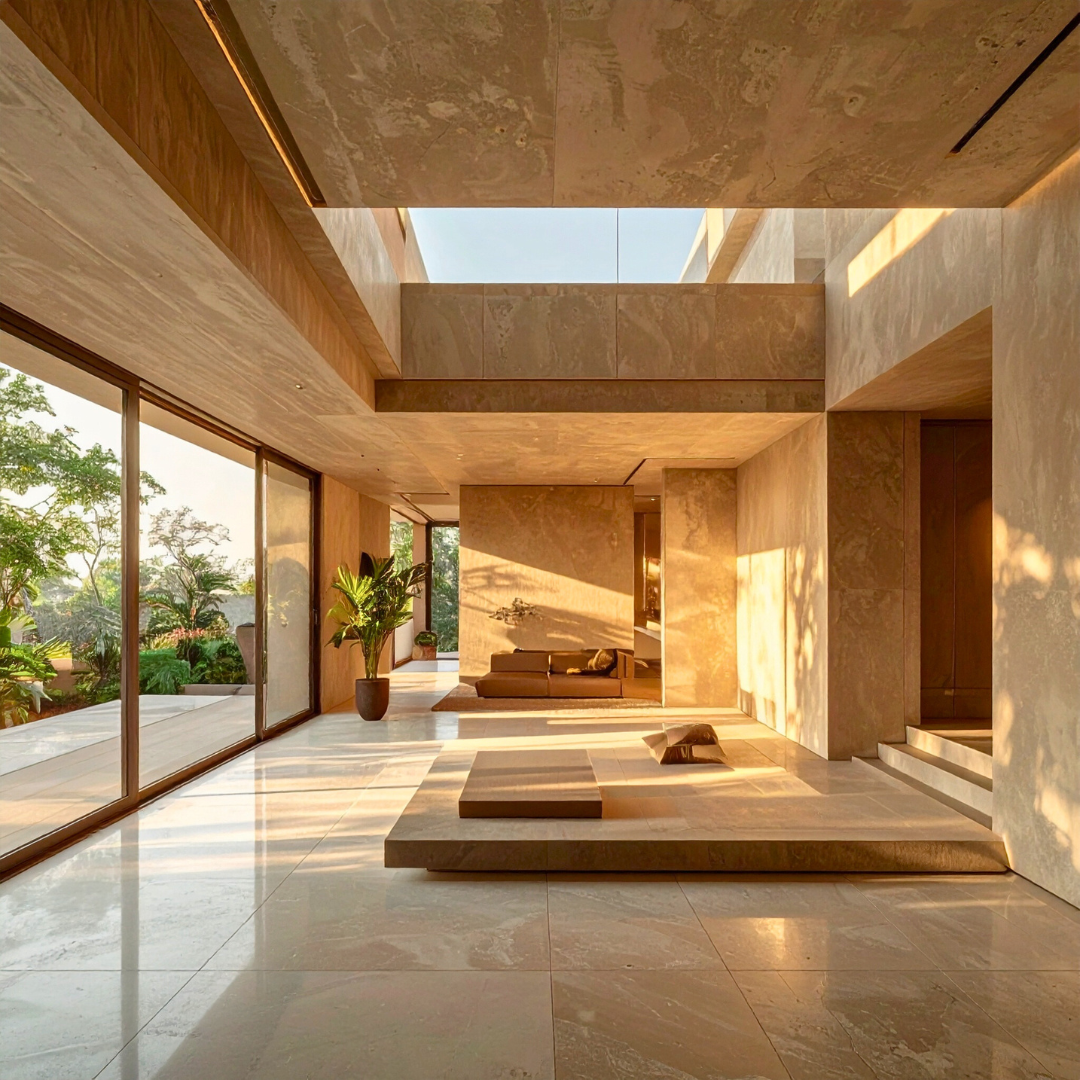 Daylight in India is not soft or even. It is high in contrast, rich in warmth, and extremely reflective. It exaggerates textures, amplifies undertones, and exposes imperfections that remain invisible in artificial light. A marble that looks elegant under studio lighting may glare aggressively in a south-facing living room. A matte wall that seems calm in the evening can appear chalky and flat at noon.