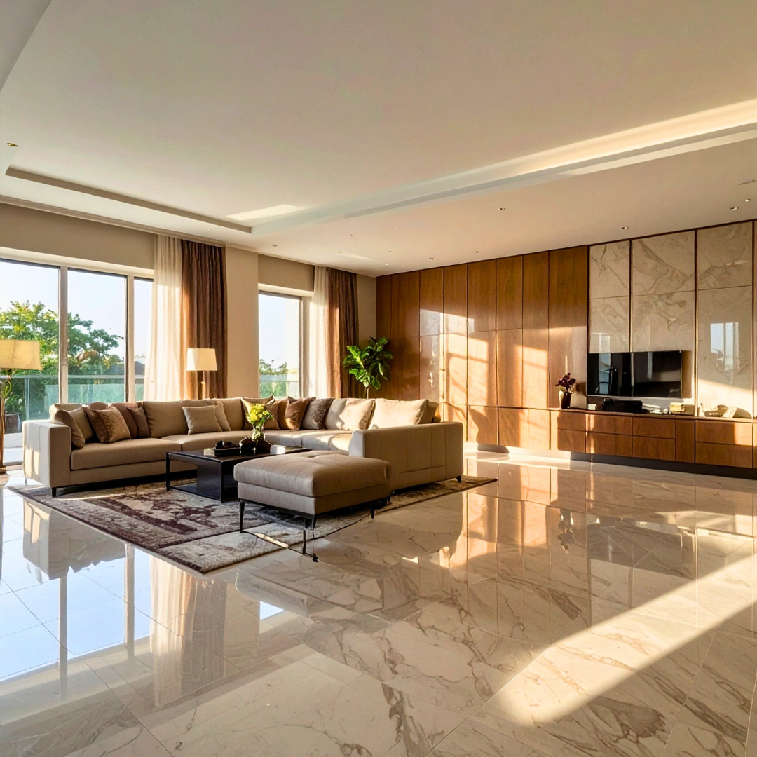 Indian daylight does not simply illuminate a room — it ricochets through it. Polished floors throw light onto walls. Glossy furniture reflects brightness into the ceiling. Even fabrics and rugs bounce subtle hues across a space.