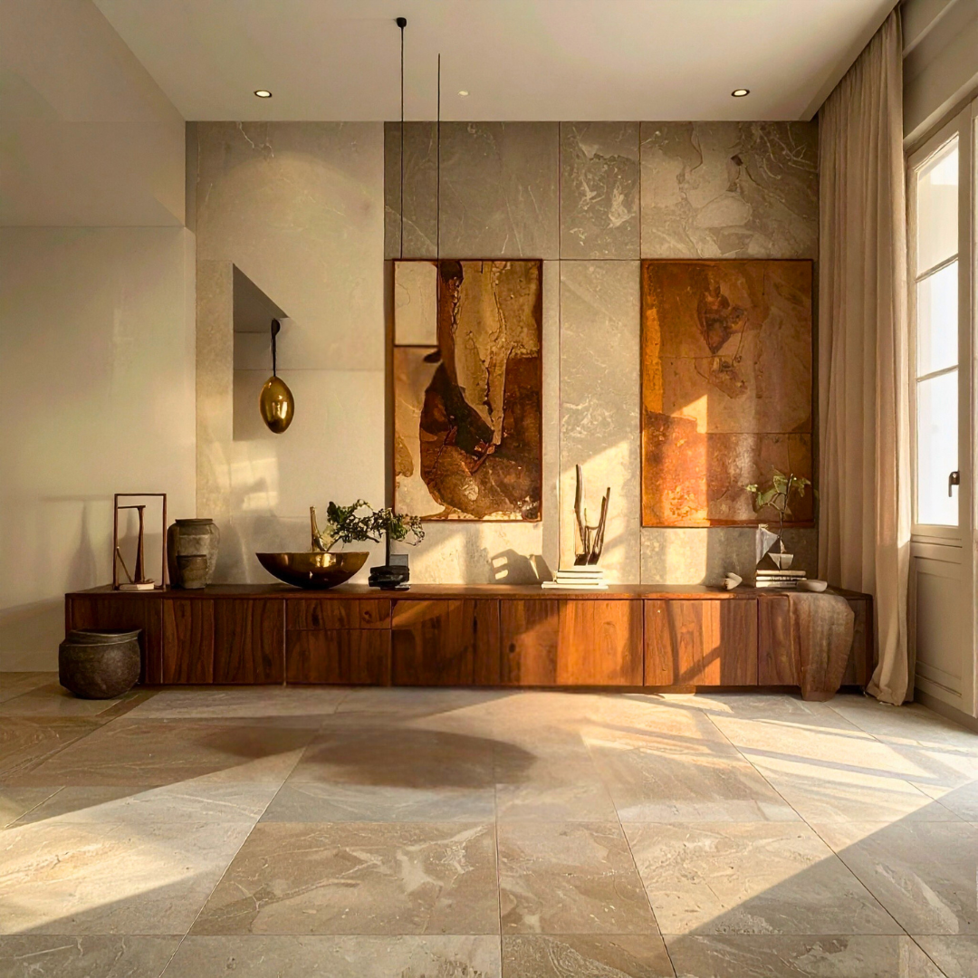 One of the most defining shifts we see is the move away from obvious statements toward quiet complexity. Materials are no longer chosen to impress at first glance, but to reveal depth over time. Textures soften, finishes mature, and spaces grow richer with use.