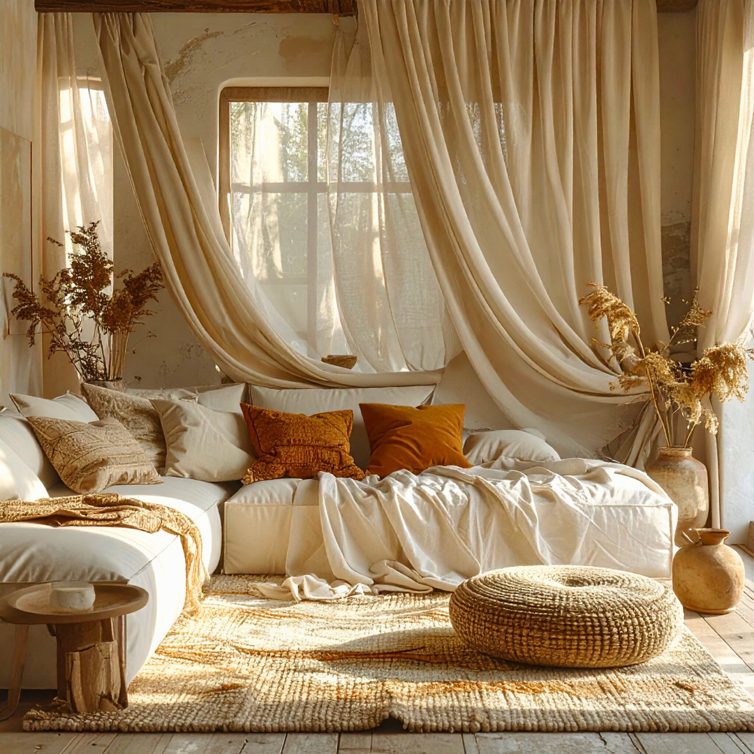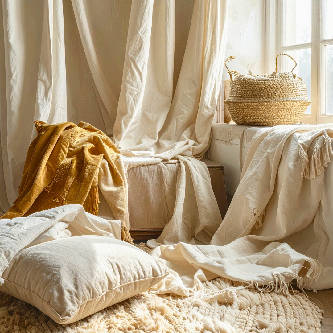 Comfort in interiors is a sensory equation. It’s not limited to plush seating or soft fabrics, but extends to how a room interacts with your senses. Natural fabrics breathe and move with the space — they respond to temperature, absorb light, and adapt to changing moods.