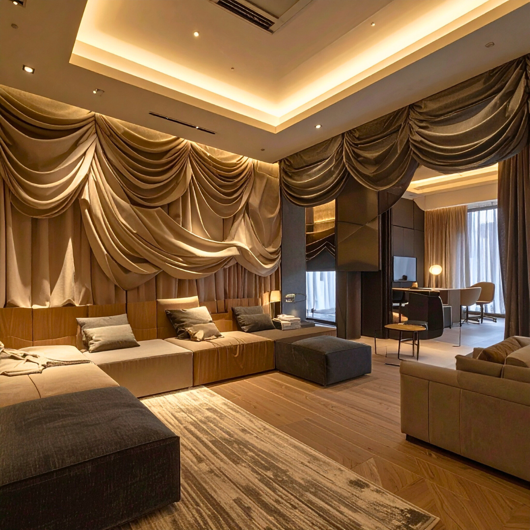 In the work we do at Blucap Interiors, textiles often play the unseen role of acoustic sculptors. Heavy drapes, area rugs, and upholstered panels create a quieter, more balanced environment — particularly in offices, lounges, and open living spaces.