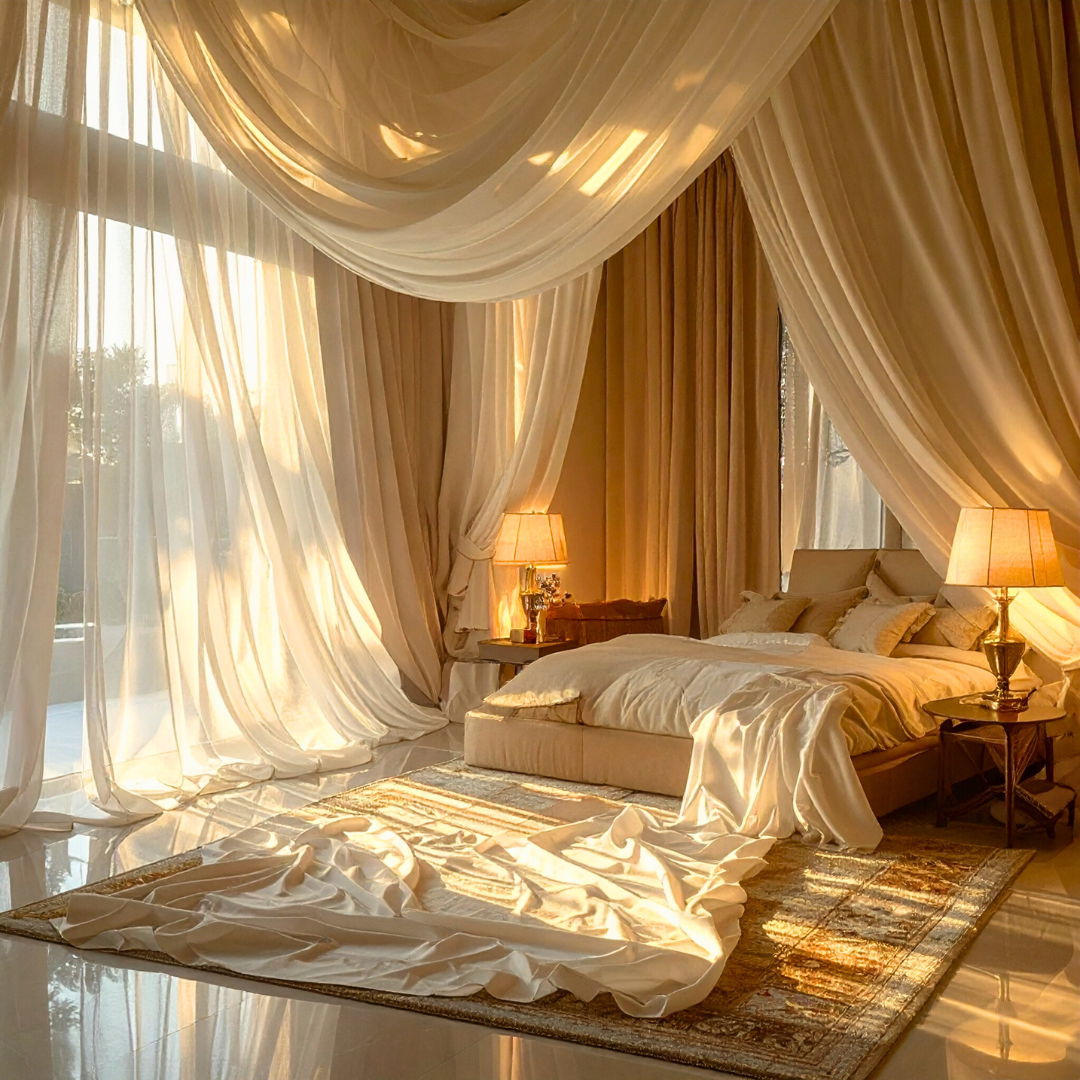 Light loves fabric. It filters through, bounces off, and settles upon it in endlessly poetic ways. The way sunlight glows through sheer curtains at dawn or how lamplight warms the folds of velvet at dusk — these are the moments that define the emotional temperature of a room.