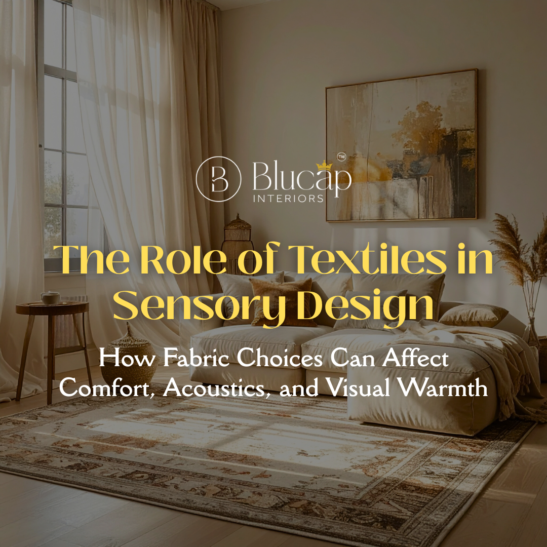At Blucap Interiors, every fabric tells a story — one of touch, tone, and timelessness. Because true design isn’t only about what pleases the eye; it’s about what lingers in the senses. And often, it’s the texture of a space — the whisper of fabric against light — that makes it unforgettable.