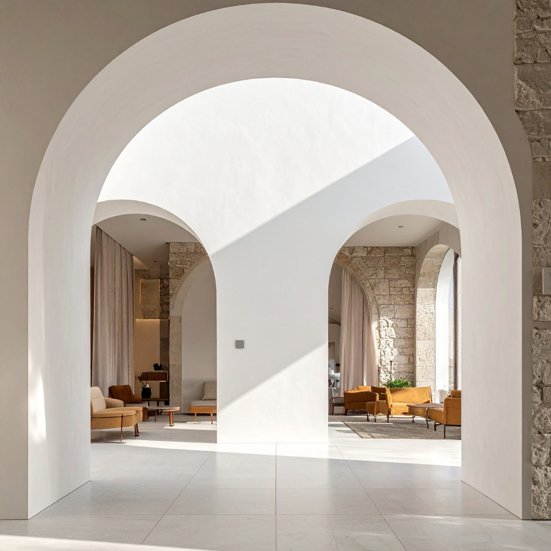 In our work at Blucap Interiors, arches are never treated as decorative afterthoughts—they are defining architectural gestures. Their versatility allows them to seamlessly blend into both residential and commercial environments.