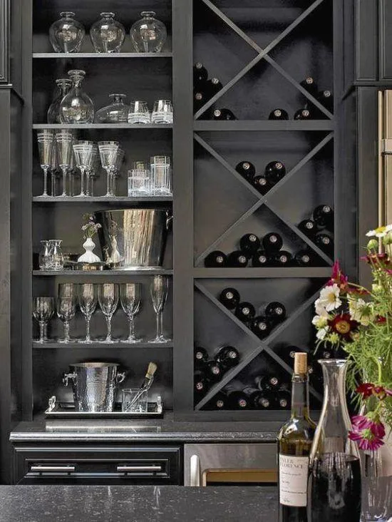 Amazing and interesting! A perfect wine bottle storage for the modern minimalist home. This great design also doubles as a room divider. The silver or chrome bars give an edgy look. You can also use wood bars for a more rustic vibe.