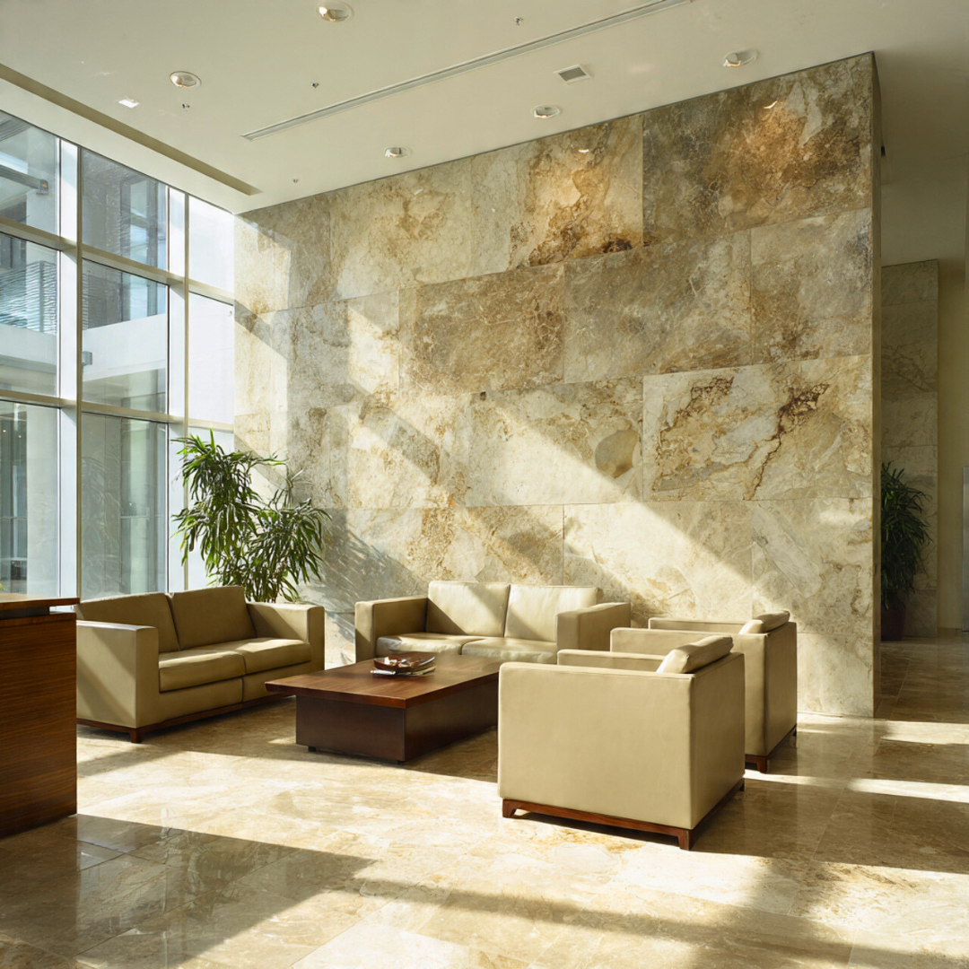 Corporate environments are often saturated with glare, reflective finishes, and digital stimulation. Stone offers a quieter alternative — one that feels composed rather than performative. Its depth is perceived gradually, not instantly.